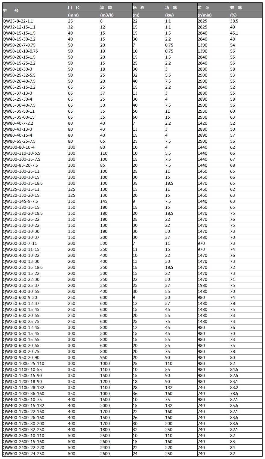 QW 50 - 20 - 15 - 1.5 | | | | |__ 電機功率:KW | | | |_________ 額定揚程H:M | | |_______________ 額定流量Q:M3/H | |_____________________ 出水口徑直徑MM |____________________________ 移動(dòng)式無(wú)堵塞潛水排污泵